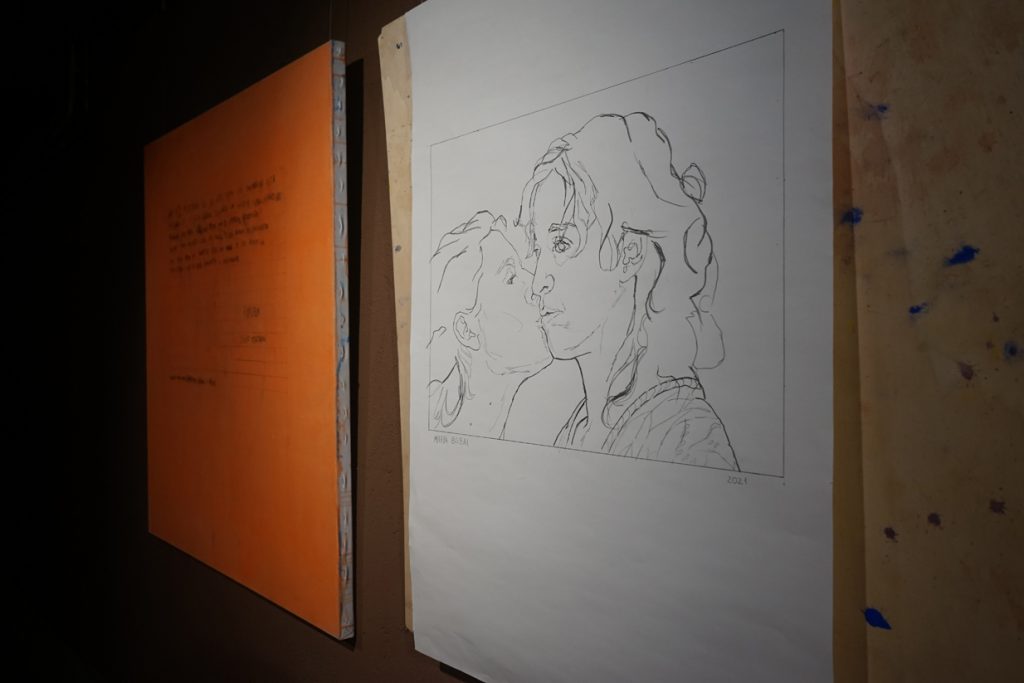 Las líneas, a veces casi tímidas, otras seguras y definidas, dan lugar a imágenes donde lo que se ve convive con lo que apenas se insinúa. El trazo directo, la falta de artificio, y el espacio en blanco no como ausencia sino como margen de posibilidad, sostienen una poética donde la cercanía entre los cuerpos es también una forma de pensamiento.